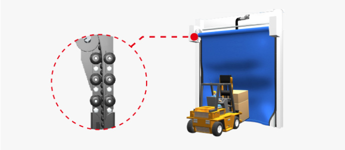 2.采用拉鏈將織物與側框導軌整體連接起來,實現更好的密封性能和氣密性。當發生事故碰撞時,織物可以從導軌上走出來,然后自動返回。這減少了日常維護。