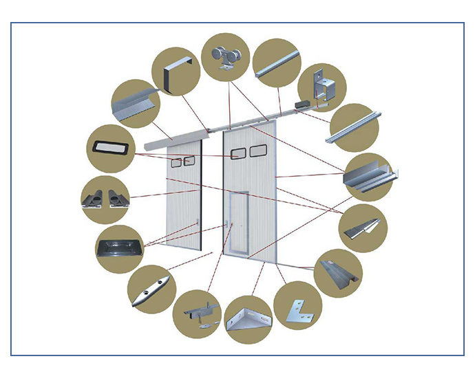推拉門常用于各種車間、廠房、倉庫用門;在建筑物門洞左右的空間,選擇雙向或單向推拉的開啟形式;在建筑物門洞尺寸大小,選擇左右或上下重疊推拉的開啟形式;一般為上承重懸掛式,當(dāng)用戶需要或門洞上方不具備安裝軌道的條件時(shí),可設(shè)計(jì)為下承重支撐式;為方便人員進(jìn)出和保證采光,可開設(shè)小門或采光窗。