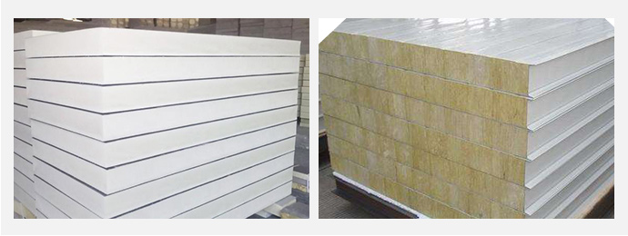 B.巖棉板。總厚度50mm,密度50kg/m3;表面鋼厚度0.4mm;防火性能更好。